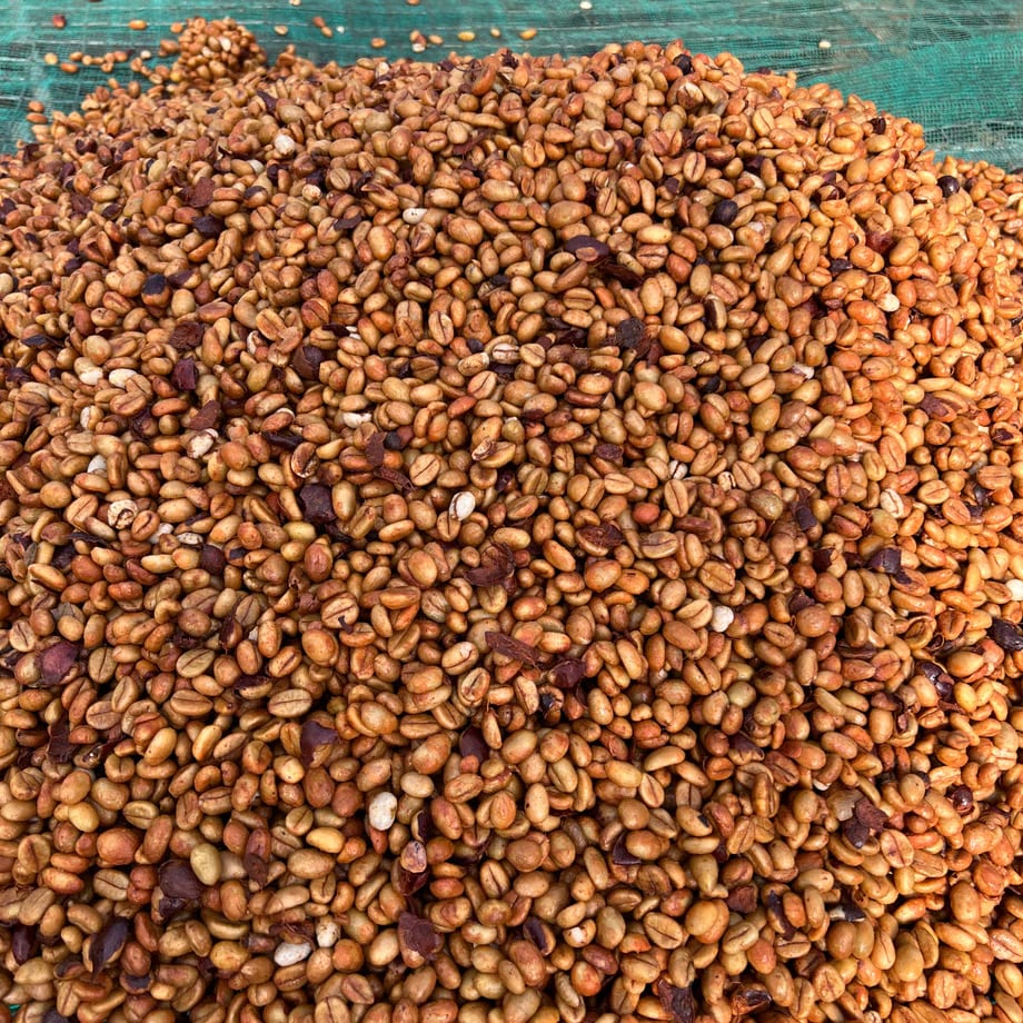 農家さん達は、完熟したロブスタチェリーを手済み収獲、収穫後更に完熟チェリーだけをハンドピックしていきます。