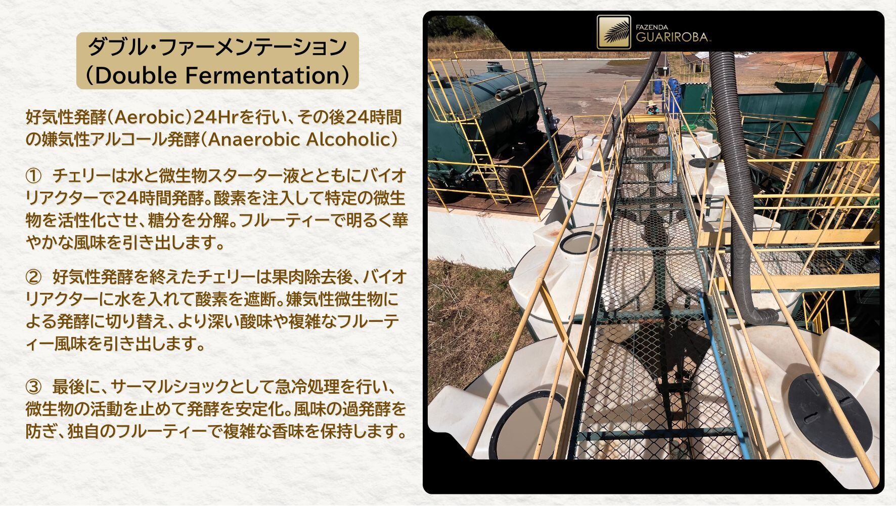 プロセス/ Double Fermentation(ルートアエロビック・好気性発酵24時間+嫌気性発酵24時間)